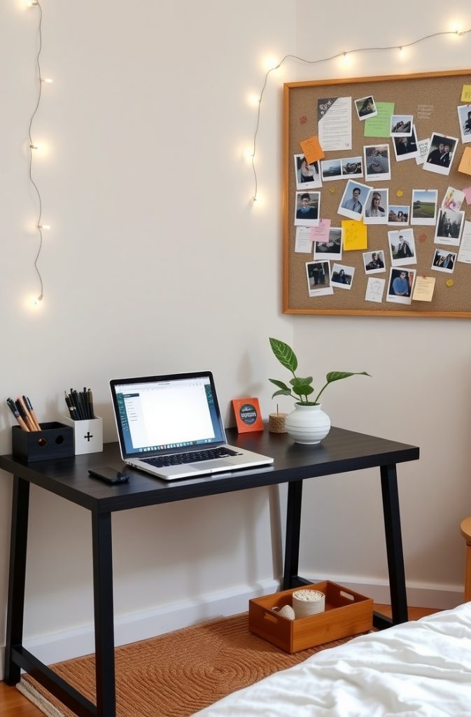 Your desk should be both practical and inspiring. Use a monitor stand to save surface space, organizers for pens and paper, and a comfortable chair. Add motivational quotes, photos, or a small plant to make your study zone more inviting.