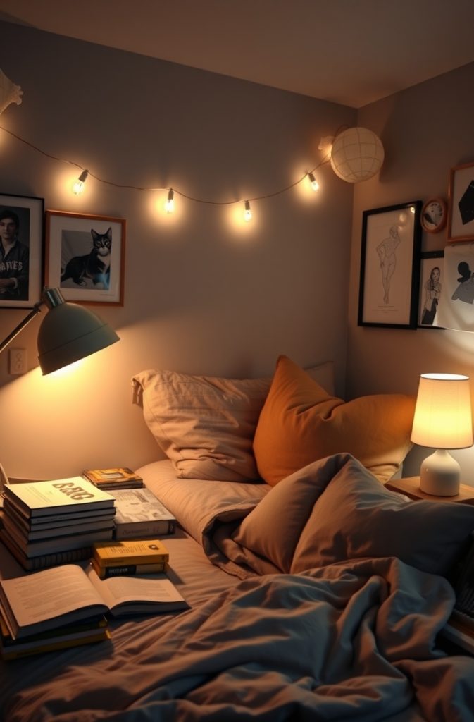 Most dorms come with harsh overhead fluorescent lights. Personalize your lighting with string lights, a desk lamp with adjustable brightness, or wall-mounted LED strips. Layered lighting creates a cozy ambiance and helps reduce eye strain during late-night study sessions.