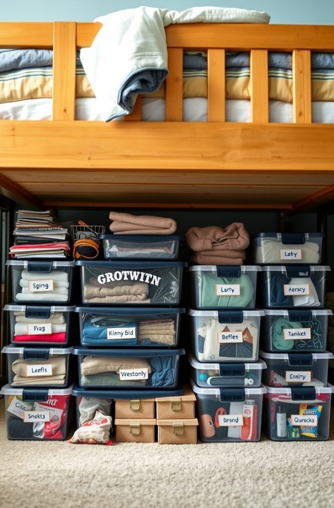 From rolling bins to vacuum-sealed bags, under-bed storage is essential for seasonal clothes, extra bedding, or even snacks. Label containers for easy access and keep frequently used items in the front.