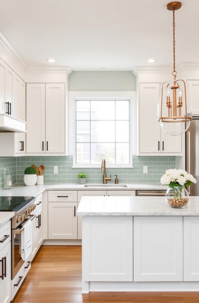 A sage green backsplash is a subtle yet stunning way to introduce color and texture into your space, making it one of the most refreshing kitchen ideas for a modern or transitional home. The soft, earthy tone of sage green pairs beautifully with white cabinetry and light countertops, adding depth without overwhelming the room.