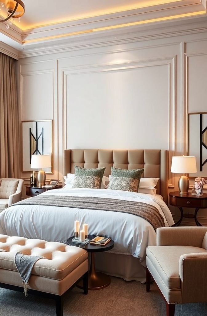 Pro Tip: Layer different textures—think Egyptian cotton sheets, velvet throws, and a tufted bench at the foot of the bed.