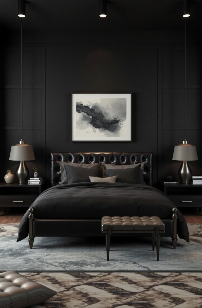 Pro Tip: Install accent lighting behind a dark wood headboard or use wall sconces for layered illumination.