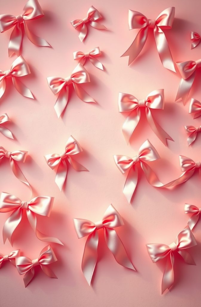 Pink bows are a hallmark of coquette styling. Whether tied in a ballerina-like fashion or scattered delicately across a wallpaper design, they instantly evoke softness and grace.