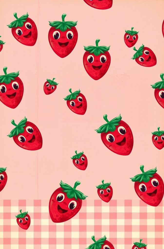 Merging strawberries with vintage aesthetics, this wallpaper style is perfect for those who love a nostalgic yet playful design. The strawberries are often depicted in hand-drawn or printed forms over old-school checks, soft pink backdrops, or vintage magazine layouts.