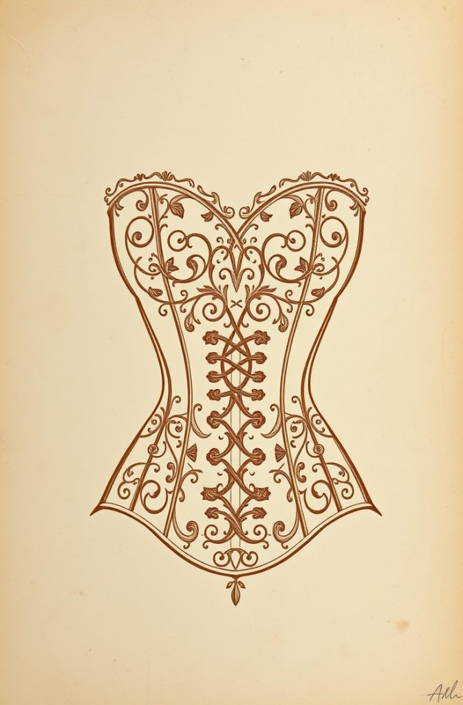 Corsets symbolize feminine mystique and elegance. Stylized illustrations or vintage photos of corset fashion create striking yet delicate visuals that fit perfectly with the romantic coquette sensibility.