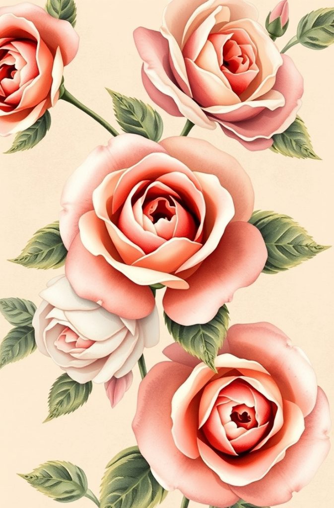 Roses have long symbolized romance, beauty, and nostalgia—making them a go-to for the coquette aesthetic. Whimsical rose print wallpapers typically feature soft, watercolor blooms or vintage-style illustrations in shades of blush, ivory, and dusty pink. They can be minimal or lush, depending on the level of floral drama you prefer.